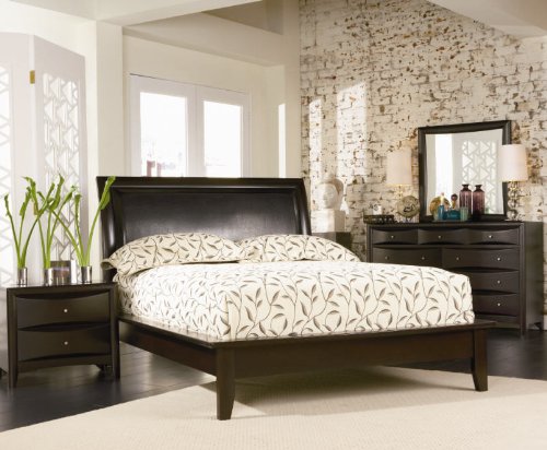 * Cappuccino Platform Bedroom Collection crafted from Solid Hardwoods with Maple Veneers